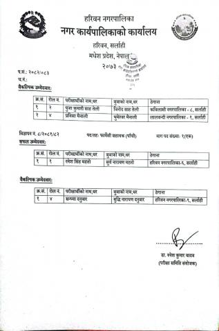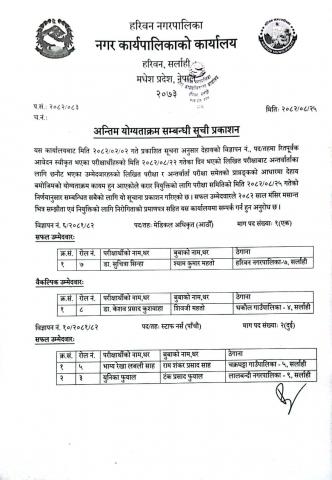 अन्तिम योग्यताक्रम सम्बन्धी सूची प्रकाशन।