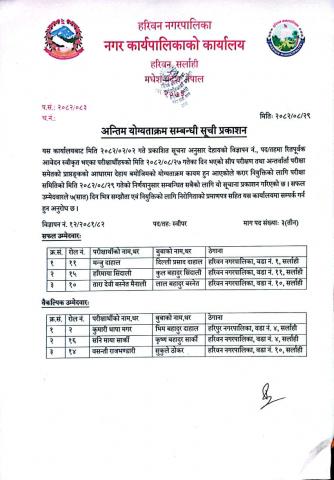 - हरिवन नगरपालिका स्थानीय राजपत्र प्रकाशन सम्बन्धी कार्यविधि, ।