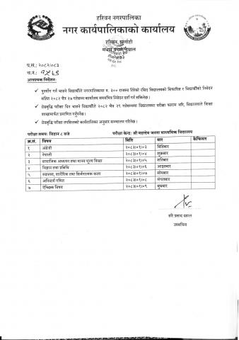 - हरिवन नगरपालिकाकाे कार्यसम्पादन नियमावली,२०७४