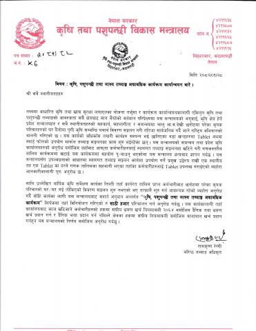 कृषि, पशुपन्छी तथा मत्स्य तथ्याङ्क अद्याबधिक कार्यक्रम कार्यान्वयन बारे।
