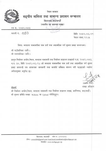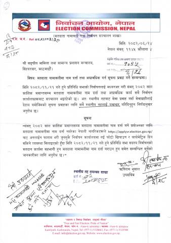मतदाता नामावलीमा नाम दर्ता तथा अध्यावधिक गर्न सूचना प्रवाह सम्बन्धमा।