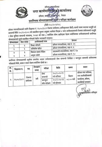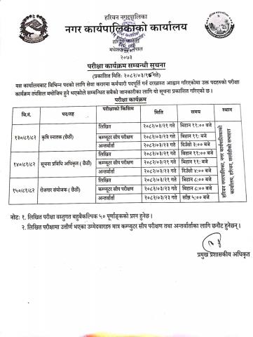 परीक्षा कार्यक्रम सम्बन्धी सूचना