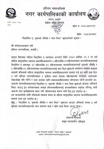 "भिटामिन ए, जुकाको औषधि र बाल भिटा" खुवाउनेबारे सूचना !