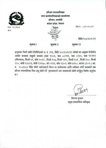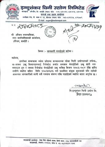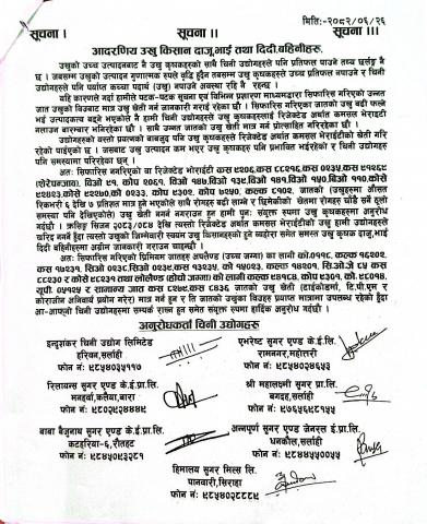 रिजेक्टेड अर्थात कमसल उखुको जातहरु सम्बन्धी जानकारी गराईएको वारेमा।