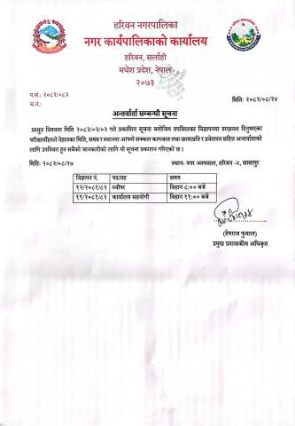 अन्तरवार्ता सम्बन्धी सूचना ।