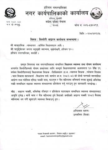 किशोरी आइरन कार्यक्रम सम्बन्धमा ।