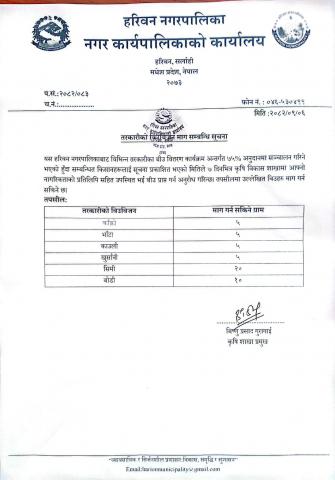 तरकारीको बिउबिजन माग सम्बन्धी सूचना ।