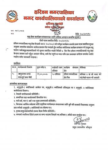 पशु सेवा कार्यक्रम संंचालनका लागि प्रसताब आव्हान सम्बन्धि सूचना ।