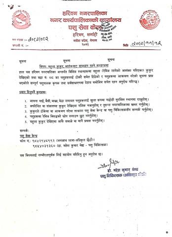 बहुला कुकुर आतङ्कबाट सावधान रहने सम्बन्धमा ।
