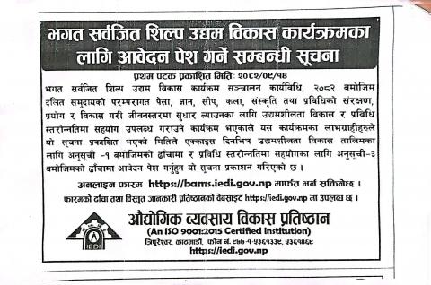 - सूचना प्रविधि प्रयोगशाला स्थापना गर्ने सम्बन्धमा प्रस्ताव माग गरिएको सूचना ।