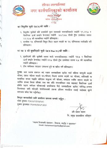 - हरिवन नगरपालिका "आर्थिक सहायता उपलब्ध गराउनेसम्वन्धी कार्यविधि, २०७५"